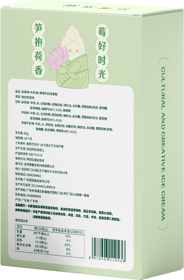 竹荷文創(chuàng)雪糕以竹筍為原型,萌態(tài)竹筍懷抱荷花,濃郁抹茶、清甜草莓、香醇牛奶三味碰撞,讓味蕾在竹韻荷香間暢游。